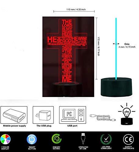 This Jesus Cross lamp, appears as 3D Illusion effect by 8 bright LED bulbs,actually completely 2D flat.