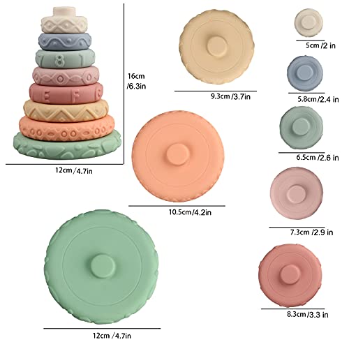 8 Pcs stacking building rings:upgrated edition,large sizes and catch babies eye and develop fine motor skills