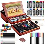 This large-capacity painting materials is your best choice, whether you are a beginner and have not yet determined your favorite painting supplies, or want to try several other painting materials. This set of paintings will help you create masterpieces and gain a sense of accomplishment! Bright Colors And Rich Choices Artistic paints have excellent durability and water resistance. Bright, rich and vivid colors are easy to mix, watercolor and acrylic works can be stored for a long time without fading Play With Color And Mixing Enjoy the fun of painting in bold, bright and vivid tones! A rich range of colors can be selected, so you can try different art materials and practice various techniques. High-quality paint crayons render stunning artworks, and colorful pencils add vitality to your drafts. The large-capacity artists drawing sets stimulate your painting potential. Good Choice For Festival Gifts Comes with a beautiful wooden art case, you can protect your art things from clutter and dust, and enjoy a neater painting atmosphere. The 174 all-in-one painting set is the best choice for Christmas, New Year and Birthday. Therefore, it is one of the best gifts you can give to your children and friends. One Kit Meets All Your Needs Crayons * 60 Colored Pencils * 24 Oil Pastels * 24 Watercolor Cakes * 24 Brushes * 2 Sharpener * 1 Eraser * 1 Sketch Pencils * 2 Sandpaper Blocks * 10 Watercolor Paint * 12 Acrylic Paint * 12 Sketch Pad * 2