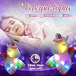 ADORABLE IMAGE: This plush unicorn has a pink and white body featuring rainbow horn and wings, looking lovely and adorable. We believe that this charming unicorn is set to become a firm favorite in girl’s stuffed animal garden which can be a permanent fixture on her bed, besides,it can be night light in the camping tent.