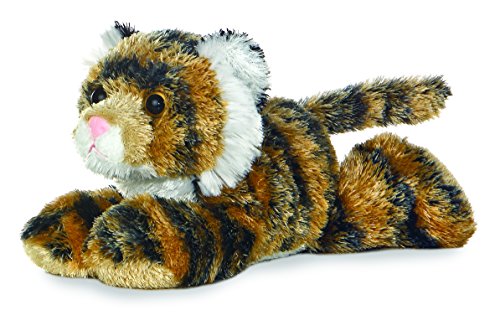 Tanya the tiger is stretched out in full flop “ just like a cat! 8 inches of orange and black tiger strip fun, Tanya also has a fuzzy white ruff around her head.