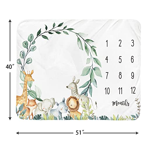 Baby Monthly Milestone Blanket Boy – Jungle Animals Newborn Month Blanket Neutral Safari Personalized Shower Gift…