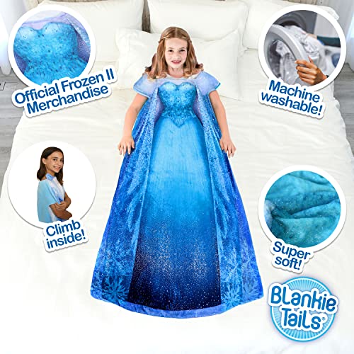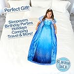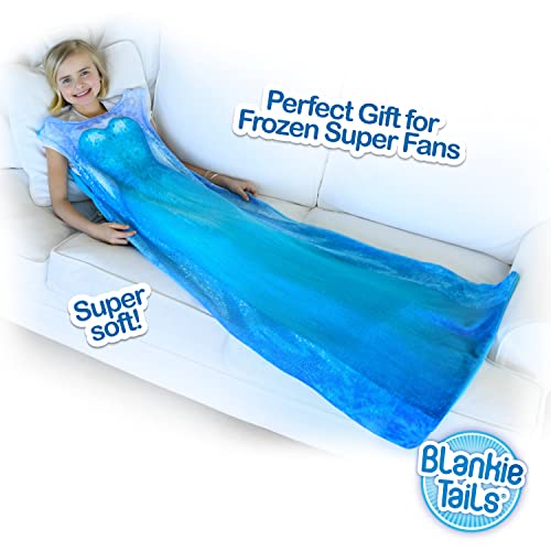 ❄️PREMIUM QUALITY – Each plush blanket is constructed of high quality, premium, soft fabric, making it the perfect snuggle blanket or kids sleeping bag. The Blankie Tail Frozen dress design doubles as both the perfect bedtime plush throw blanket and daytime dress-up Elsa blanket. The Disney wearable blanket sparkles and shimmers in the light while still being soft to the touch, adding that special touch of magic. Great for staying cozy, birthdays, sleepovers, travel, or movie night.