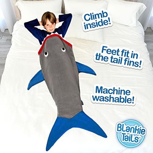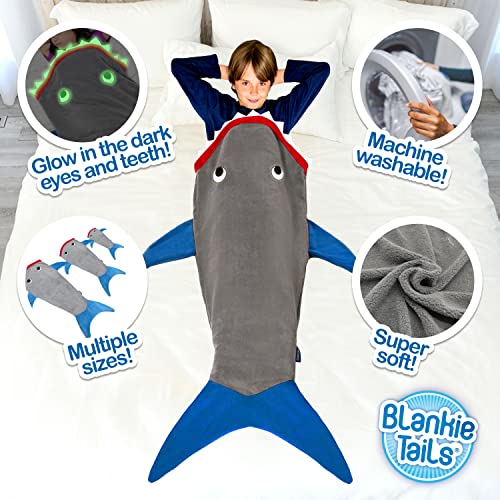 🔥NEW GLOW IN THE DARK SHARK TAIL BLANKET – From the makers of The Original Shark Blanket, comes our most JAWsome Glow In The Dark Blanket ever! Our new cozy blanket for boys and girls now features fun glow in the dark shark eyes! Turn off the lights and watch the eyes on your shark throw blanket light up! The unique shark blanket sack design lets you climb inside and put your feet all the way into the fins! Spark some killer fun and laughs with this shark tail blanket for boys and girls!