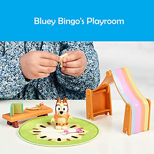 There are 6 fun accessories and one Bingo figure to play with in the Mini Bluey Playroom Playset!