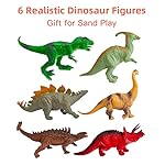 【Super Valued Beach Toys Set】 This dinosaur toys set includes 24 pieces of beach sand toys: 1 sand bucket, 1 funnel, 2 funnel supports, 1 mill-wheel, 1 sand sifter, 1 sand shovel, 1 trowel, 1 watering pot, 1 paw sand mold, 3 dinosaur sand molds, 4 dinosaur assemblies, 6 dinosaur figures and a large mesh beach bag + dinosaur knowledge book. So many accessories make this toy become a super cost-effective set.