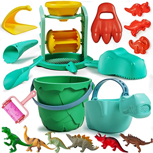 burgkidz Dinosaur Sand Toys Beach Toys Kit: Include Bucket and Shovel, Beach Mesh Bag, Sand Water Tunnel, Dinosaur Beach…