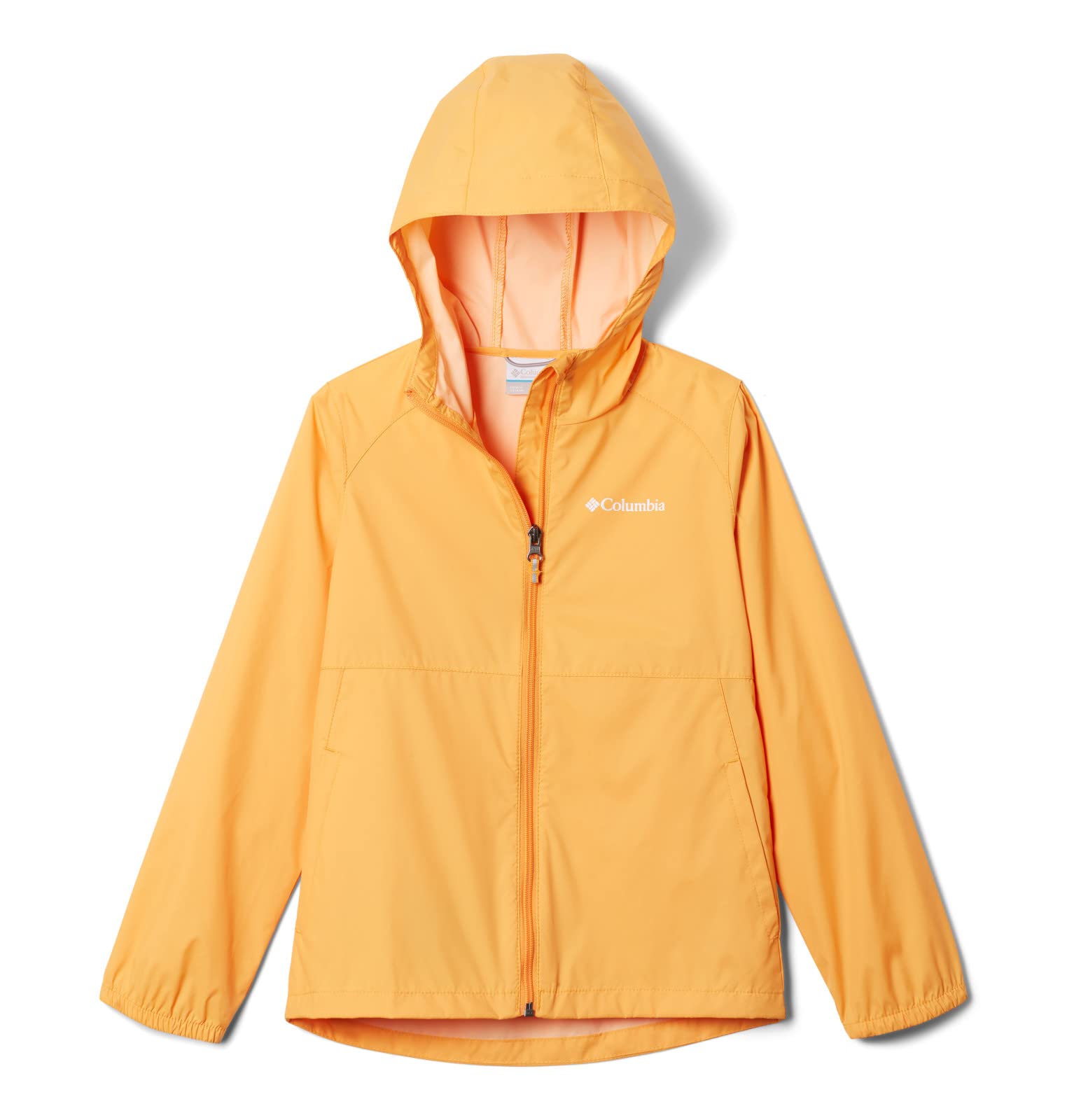 COMFORTABLE RAIN JACKET: The Columbia Girls Switchback II Jacket is a hooded waterproof rain coat with elastic cuffs, and a drop tail, designed to keep your child cozy and dry