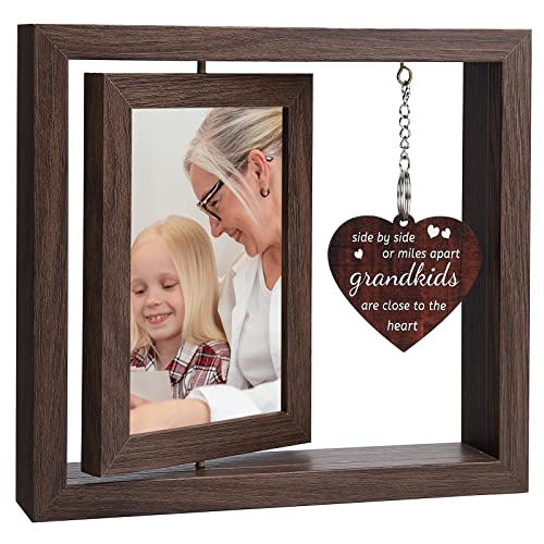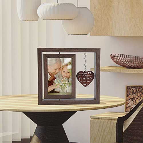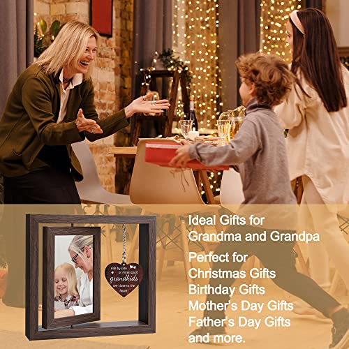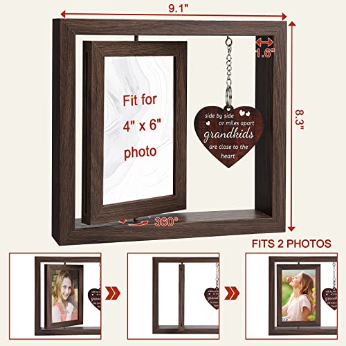Creative Design: This gift for grandmother and grandfather features a 360° rotating picture frame and a heart-shaped wood sign hanging beside. It allows you to display 2 photos simultaneously. Creative design to record sweet love to your grandma.