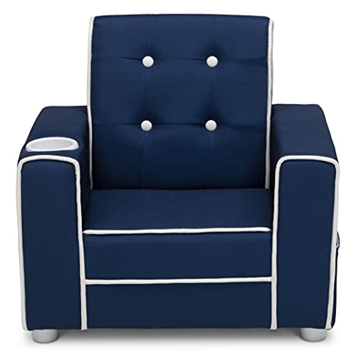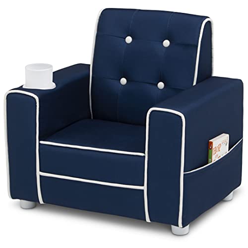 The Chelsea Kids Upholstered Chair with Cup Holder from Delta Children will give your little one a comfy place to read or relax. Button tufting on the back and contrasting piping adds grown-up style to this child-size chair while the built-in cup holder and storage pockets on the sides adds convenience. A chic addition to any children’s bedroom, playroom or the living room, this chair is crafted with a sturdy wood base and a generous foam fill to ensure it is as comfortable as it is stylish. Chair coordinates with other items in the Chelsea Collection from Delta Children. Delta Children was founded around the idea of making safe, high-quality children’s furniture affordable for all families. They know there’s nothing more important than safety when it comes to your child’s space. That’s why all Delta Children products are built with long-lasting materials to ensure they stand up to years of jumping and playing. Plus, they are rigorously tested to meet or exceed all industry safety standards.