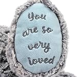 For more than 20 years, DEMDACO has designed and sold giftable products intended to “Lift the Spirit”—in times of celebration, when comfort is needed, or just to put a smile on someone’s face. The hand-curated artisan gifts it develops and distributes are chosen for their potential to help people nurture goodness in the lives of others, celebrate family and friends, and encourage people to treat themselves. We partner with artists representing a wide range of styles and mediums, and whose work is consistent with our values. Products are curated through this filter, then carefully reproduced by skilled craftspeople around the world. Benjamin Bunny You Are So Very Loved Figure Toy is the perfect gift for little boys who could use a cuddly friend to watch over them as they sleep; Right foot features a satin heart; Left foot features embroidered text that reads “You are so very loved”. Toy is made of plush fabric with soft blue finish; Super soft, luxurious gray toy features blue fabric accents inside the ears and on the feet. Plush figure toy measures approximately 12 inches tall; Surface washable and super huggable. Sends a message of love to the special little boy in your life; Will be your child’s treasured friend for years to come. From Luxurious Baby Collection; Ships in protective packaging.