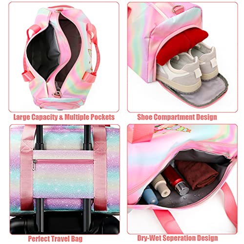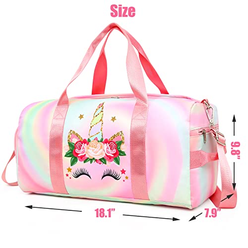 【Ideal Gift for Girls】Cute unicorn pattern,unique color, reinforced handheld, double smooth quality zipper. Could be used as carry-on bag, cross body bag,travel bag with Rolling Sleeve Strap.