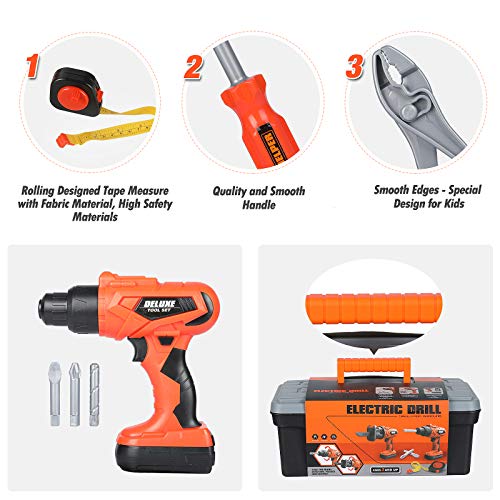 Elitoky Kids Tool Set with Electronic Drill Toy, Our Bright Red Electronic Pretend Tool Set is Perfect Build Tool to Nurture Little Future Mechanic Building Builders.