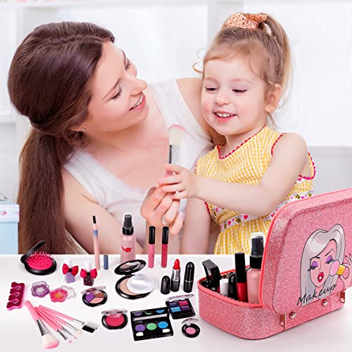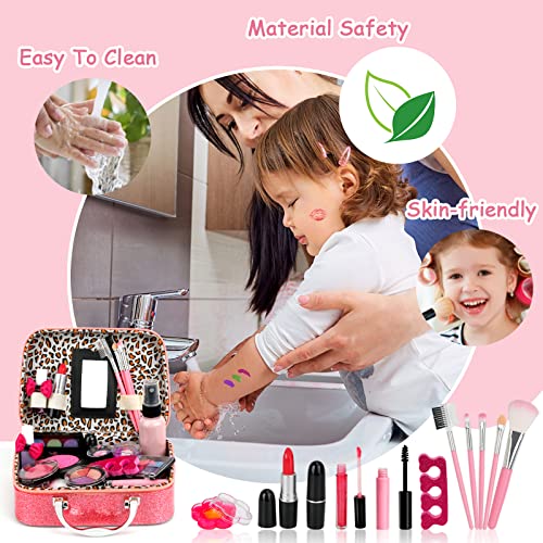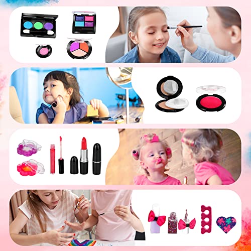 ⭐SAFETY & WASHABLE KIDS MAKE UP KIT: Our kids makeup set are made of safe, water-soluble materials that can be washed off with soap and water, not irritating and is perfect for kid’s skin. Whether she applies the makeup carefully or simply has fun smearing colors all over her face, parents trust this children makeup kit for its gentle ingredients. You can let her play all she wants!