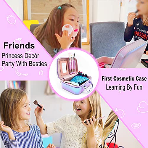 【With a Shining Travel Portable Cosmetic Case】Teach your kids to put all the makeup accessory into it, learn how well organized. Let it be the first make up kit for your princess. A small mirror inside! An Ideal girl gift for 3,4,5,6,7,8 years old.