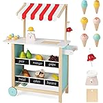 【Easy to Assemble】With detailed assembly instructions, this pretend play dessert shop is easy to assemble. Do not worry about taking too much time to install the kids ice cream cart. And the smooth surface makes it easy to clean.⚠️Note: the kids dessert shop truck comes with ice cream toys but doesn’t come with food toys.