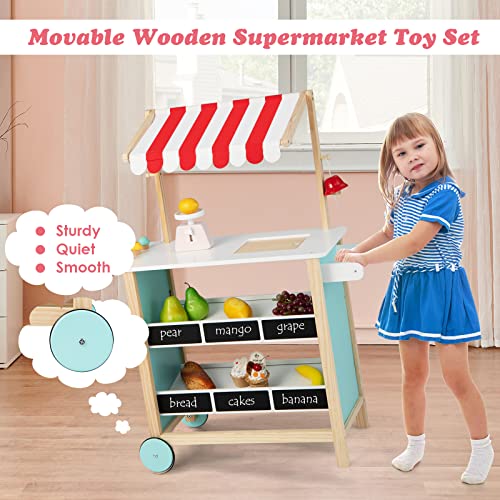 【Child-Safe Material for Protection】 Made of selected MDF board and solid pine wood, the kids grocery store playset is durable and stable for long-time use. In addition, the surface is polished with smooth edges and no burrs, which effectively avoids sharp injuries and won’t pose any risk to kids’ health.