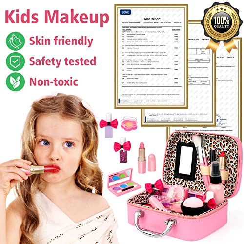 CUTE COSMETIC CASE, TRAVEL PORTABLE – Our girls makeup set with cute makeup case, allows your little girl to organize and collect scattered cosmetic toys. Convenient to carry, your princess can play with her favorite makeup toys on travels, dress up party and other places.