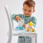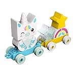 Surprise a toddler with the cute and colorful LEGO DUPLO My First Unicorn (10953). This versatile toy is built with colorful shapes that are perfect for little hands to pick up, place and pull along. Engage toddlers with imaginative play as they develop basic construction skills and learn about shapes and colors. With toddler-friendly pieces that attach and detach from the roll-along carriages, the unicorn train is packed with play possibilities. The set includes building cards showing life-size images of the models, so kids can position the bricks over the image as they build while parents help them learn about colors and shapes. For even more fun, the train connects to other wheel-based DUPLO toys. LEGO DUPLO toys put open-ended fun, self-expression and joyful learning into preschoolers’ hands. With DUPLO playsets, parents and toddlers can share precious developmental milestones as they enjoy playing together.