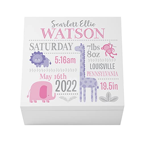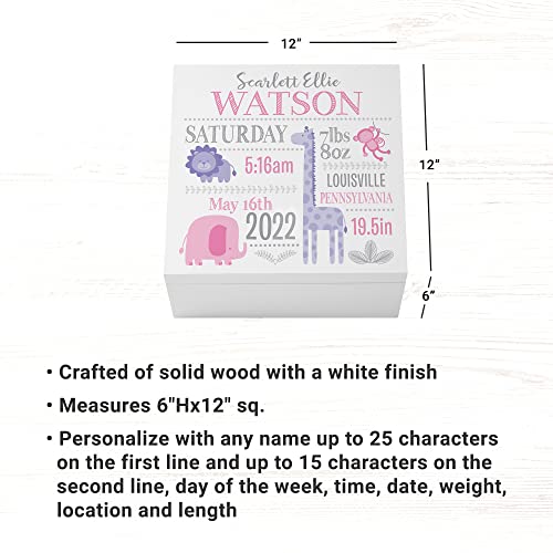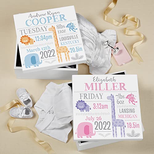 UNIQUELY PERSONALIZED: This charming keepsake box is truly one of a kind. Customize with any name up to 25 characters. Then, in up to 15 characters each, showcase all the birth details: day of the week, time, date, weight, location and length.