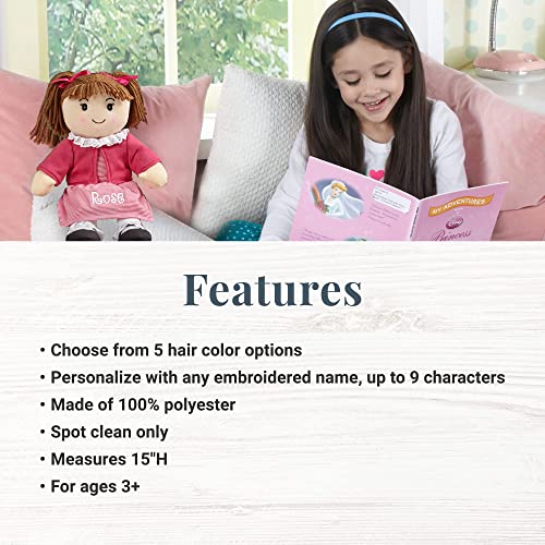 UNIQUELY PERSONALIZED: Choose Dark Brunette, Blonde, Light Brunette, Black or Red hair color. Customize this cuddly doll with any embroidered name up to 9 characters.