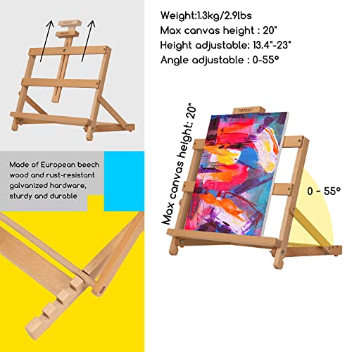 SOLID TABLETOP EASEL: Made of European beechwood and hand-sanded for a smooth and burr-free finish, the tabletop easel is practical to apply in some narrow spaces to place not only canvas. Size – 15.7”W x 13.2”D x 14.5”H, holds canvas up to 21” in height.