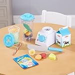 MULTIPLE ACCESSORIES: This blender set comes with wooden fruit and vegetables to slice, kale, protein powder in a pouch, a milk carton and 2 double-sided cup inserts. A double-sided reusable menu card is great for role play.