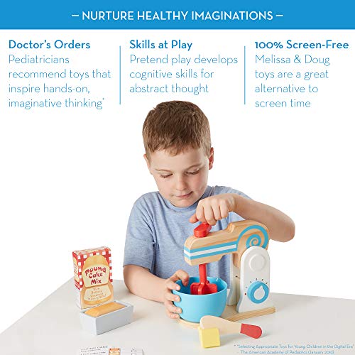 GREAT GIFT FOR KIDS 3 AND UP: The Wooden Make-a-Cake Mixer Set is an ideal gift for kids ages 3 and up. Add the Melissa & Doug Chef Role-Play Costume Set to round out the pretend play experience and give kids an engaging option for screen-free fun.