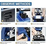 【Dual Light Illumination】 Double light compound microscope has incident and transmitted light sources, which can see both opaque objects illuminated from above and translucent specimens illuminated from below. the bottom light can be adjusting light by rotrating the wheel as you needed, easy to use.(Not including batteries)