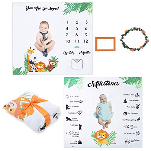 👶 BEST BABY SHOWER GIFTS – The unisex animal safari design of our monthly baby picture blanket looks adorable and comes wrapped in a beautiful ribbon making it the perfect new baby gifts for Baby Showers, Registry, Gender Reveals, Christmas & more
