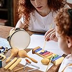 ♬ Scientific Music Toys:The percussion set comes with 8 types 13 pcs instruments, including Xylophone, Shake Eggs, Claves, Hand Bells, Triangle, Maracas, Rhythm Clapper and Tambourine instrument. It shows that music is not only fun but beneficial for cognitive development.