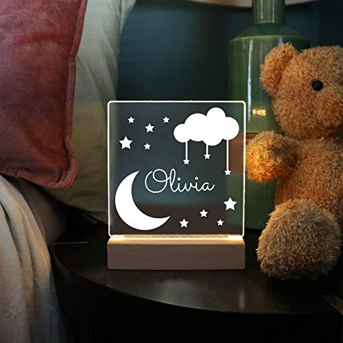 These beautifully personalized night lights are the must-have gift for your little ones. Your order features a laser-engraved name plaque and wooden LED light base that creates a warm white glow for a relaxing atmosphere to help your child fall asleep easier.
