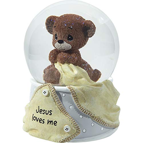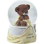 Snow globes have long been a thoughtful gift idea, and this one combines the wonder and beauty of snow globes with an uplifting message. Baby will surely be enchanted by this mesmerizing design that shares a message of eternal love. It winds up to play the hymn “Jesus Loves Me” to the delight of children and parents alike. Inside the snow globe sits a sweet little bear cuddling his favorite blanket, assured of heavenly love. Tip it upside down and see the glitter flutter all around the globe. The perfect baby shower gift, baptism, or christening gift, or Baby’s first birthday gift, this gender neutral musical snow globe is an uplifting accent for any little boy’s or little girl’s nursery. Measuring approximately 5.75”H, this snow globe is carefully crafted of resin and glass and is hand-painted. For more than 40 years, Precious Moments has been devoted to making the world a kinder place by helping people share love. A timeless brand, Precious Moments helps you celebrate everyday moments and commemorate special occasions with hand-painted porcelain figurines and ornaments as well as contemporary kitchenware, home décor, baby gifts, and more. A unique inspirational message lies at the heart of every Precious Moments product, thoughtfully designed so you can turn your special moments into memories that last a lifetime.