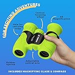 ADVENTURE ACCESSORIES: These exciting binoculars come with a real compass and magnifying glass to encourage small kids to have adventures; Includes a practical cloth bag for storage, a microfiber cloth to clean the glasses, and a neck strap to secure the binoculars