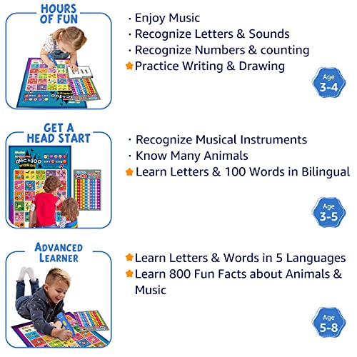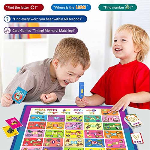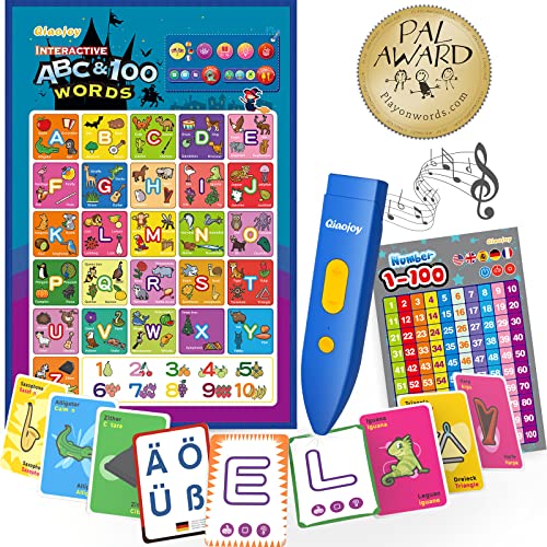 Qiaojoy 5 Languages Interactive Alphabet Wall Chart + Alphabet Flash Cards for Toddler 2-4 Years Old ABC Learning for…