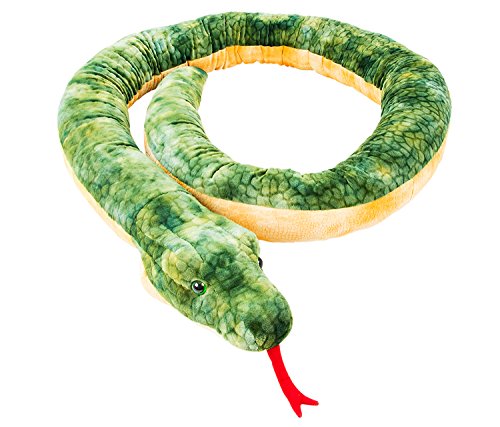 • 100” giant anaconda snake • Soft stuffed plush • Green with tan belly • Hard plastic eyes • Features long felt tongue • Great for large game prizes • One piece per unit