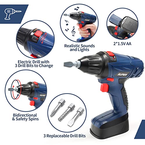 🔨 [3 IN 1 POWER TOOL DRILL SET] – The toy drill comes with 3 interchangeable drill bits and can be switched forward and reverse rotations to screw in or out the nut. It only requires 2AA batteries that simulate sound and movements, which is more attractive and develops kids’ imagination.