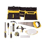 Kit includes 2 screwdrivers, file, hand saw, goggles, clamp, tape measure, ruler, and work belt