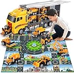 KIDS CONSTRUCTION VEHICLE TOYS SET – Equipped with 1 x foldable play mat, 1 x multi-function transport cars, 1 x forklift, 1 x bulldozer, 1 x road roller, 1 x excavator, 1 x cement truck , 1 x dump truck and a set of road signs. It is highly recommended for kids aged 3 and above to create endless happy times!