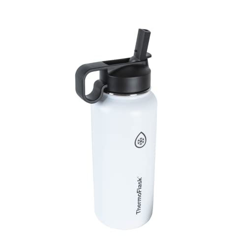 Thermoflask Double Stainless Steel Insulated Water Bottle with Two Lids, 32 Ounce, White
