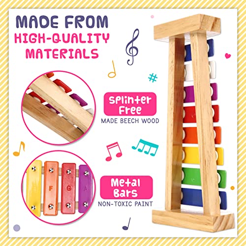 ✔ GREAT MUSICAL INSTRUMENT FOR TODDLERS – A toddler toy that also functions as a classic musical instrument that’s perfect for your little ones. Long lasting wooden base and bright vibrant multi-colored keys marked C to C notes, kids will always be excited to play.